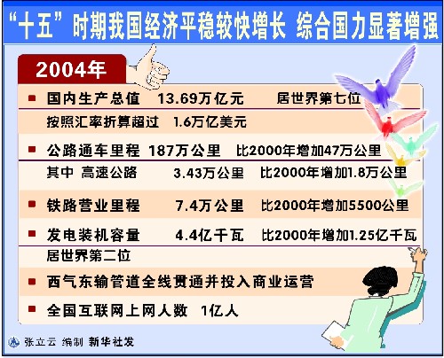 “十五”时期我国经济平稳较快增长 综合国力显著增强